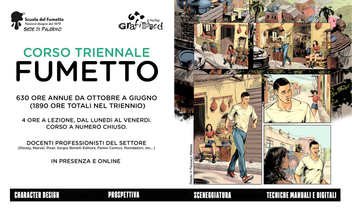 Il Corso Triennale mira a formare professionisti del Fumetto Umoristico attraverso un approccio allo studio di questo stile, sia teorico che pratico. Questo settore abbraccia una vasta gamma di generi che spaziano dalla semplicità delle strisce comiche all’antropomorfismo, fino allo stile più complesso e grottesco. Il corso intensivo prepara gli studenti a diventare professionisti completi grazie alle lezioni di anatomia, prospettiva, sceneggiatura, storyboard, disegno manuale, disegno digitale , inchiostrazione e colore. La completezza del percorso consente allo studente di avere maggiori opportunità per inserirsi all’interno del mercato non solo del Fumetto, ma anche dell’Illustrazione,dell’Animazione e del Videogames.